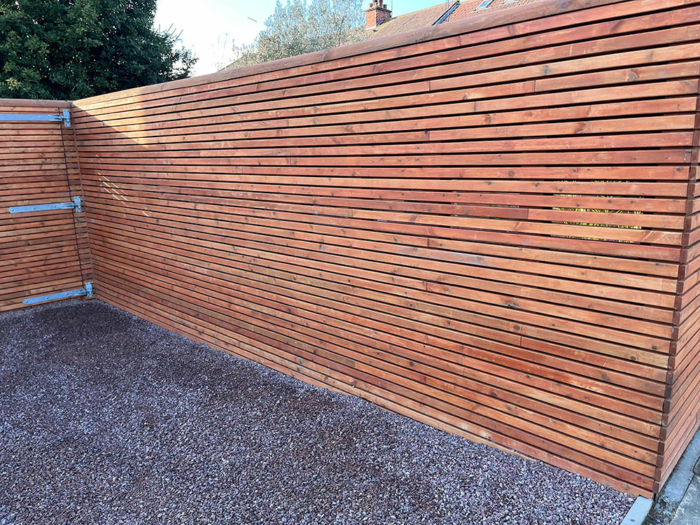 The double-sided Siberian Larch lap fence with Horizontal 44mm x 22mm larch battens offer a superior, long-lasting, and aesthetically pleasing boundary solution due to the inherent durability of the wood, robust construction method, and protective finish. This combination ensures stability, privacy, and an elegant modern appearance that will stand the test of time.