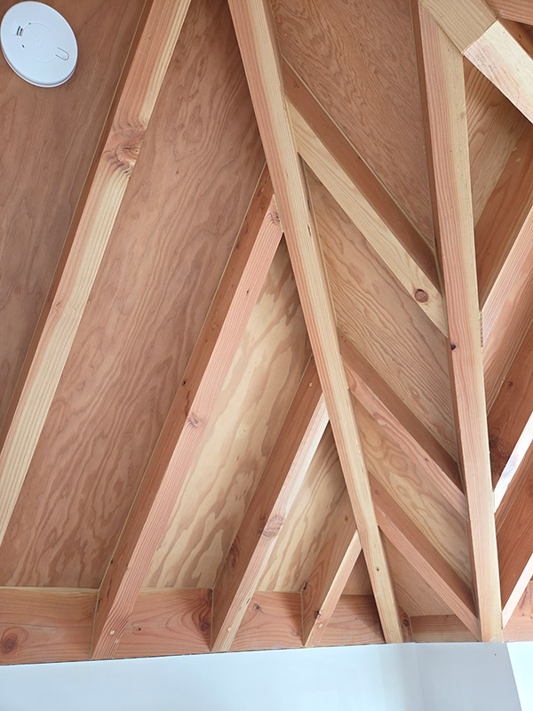 The standout feature of the house is the exposed roof structure. It needed focused hand-crafted attention on every exposed mitre to the build-up of the roof. Which is probably better associated with 2nd fix cabinetry. Rather than 1st fix usual roof construction.